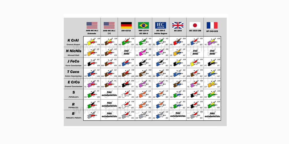 Tabela Cores Cabos Termopares