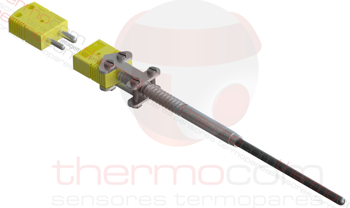 O termopar da série THCOM TC14 é produzido com pote de ligação para proteção contra tração e conector standard no rabicho. Disponível nos tipos J, K, T e N, oferece opções de montagem com junta isolada ou aterrada. Modelo fornecido com SAPA para proteger os fios do sensor contra danos mecânicos, vibração, umidade e agentes químicos presentes no ambiente industrial.