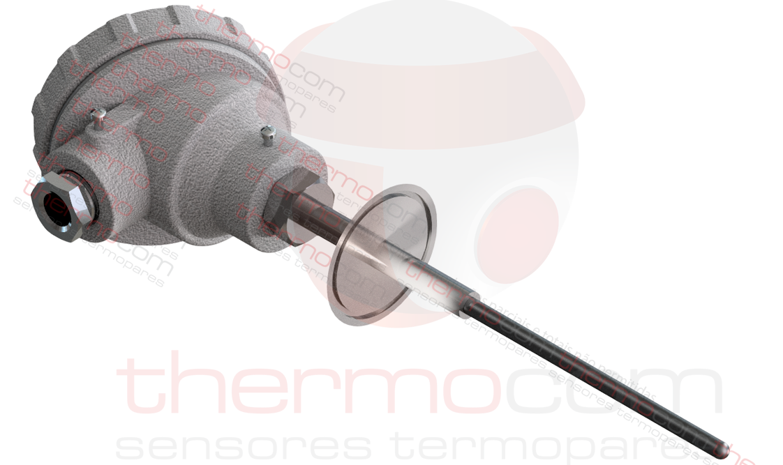 Apresentamos a nossa TERMORRESISTÊNCIA COM CABEÇOTE, BAINHA E TRICLAMP, um sensor que a THERMOCOM produz com base em especificações técnicas padronizadas e processos industriais de alta qualidade. O Tri-Clamp (ou Tri Clover) é um tipo de conexão sanitária amplamente usado em indústrias como a alimentícia, farmacêutica e de bebidas. Ele utiliza bulbos que podem ter alta pureza, o que garante as melhores exatidões e os menores erros do mercado. Por isso, o produto está disponível nas classes standard e especial, permitindo utilização em diversos processos industriais com desempenho estável e confiável. Além disso, sua construção permite ser produzido com o tipo de ligação com 2, 3 ou 4 fios. A THERMOCOM produz a TERMORRESISTÊNCIA COM CABEÇOTE, BAINHA E TRICLAMP com o bulbo isolado em relação a bainha (utilizando materiais como teflon ou fibra de vidro) os quais garantem alta imunidade contra ruídos eletromagnéticos e ainda mantém a alta resposta do sensor. Nesse sentido, essa construção utilizando pote de ligação, combinada ao uso de tubos de aço inox (como INOX 304, 310, 316 ou 316L), proporciona excelente proteção mecânica para aplicações robustas.