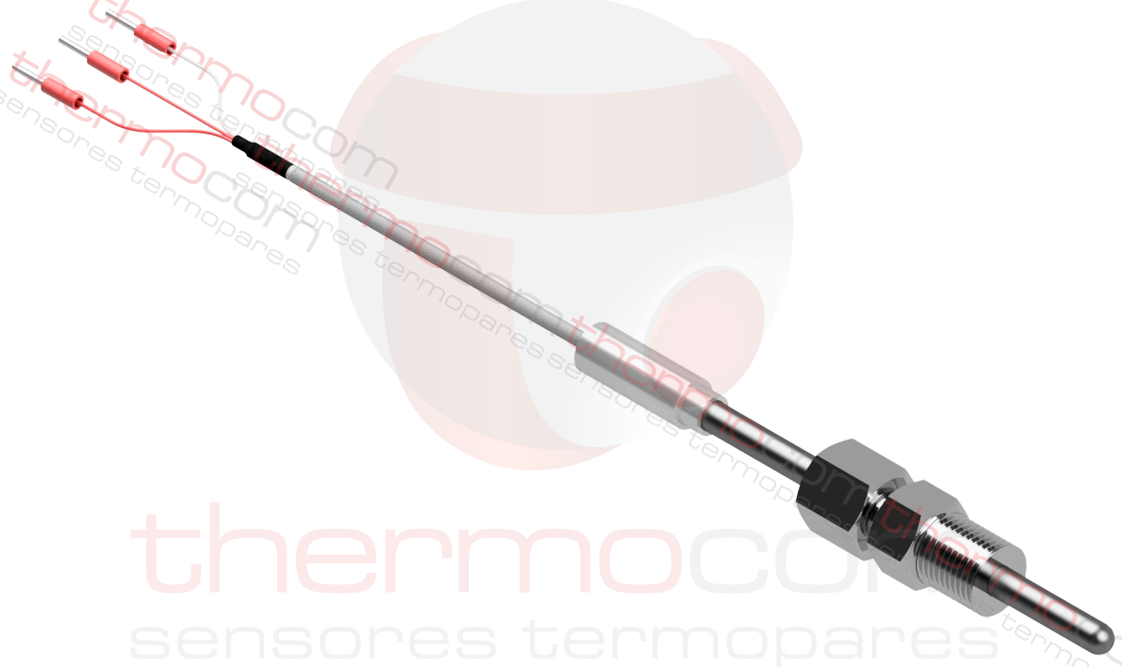 A termorresistência da série THCOM TR12 é produzda com pote de ligação anti-tração e saída dos cabos com terminal crimpado. Disponível bulbos Pt100, Pt1000, Ni120, Cu120, PTC, NTC e outros sob consulta. Montagem 2, 3 ou 4 fios. Modelo fornecido com bucim de ajuste móvel para fixação ao processo.